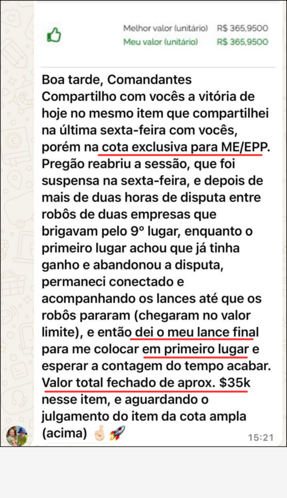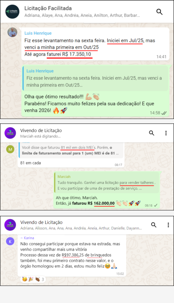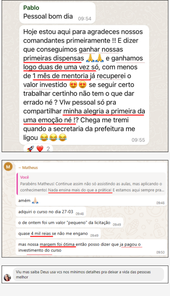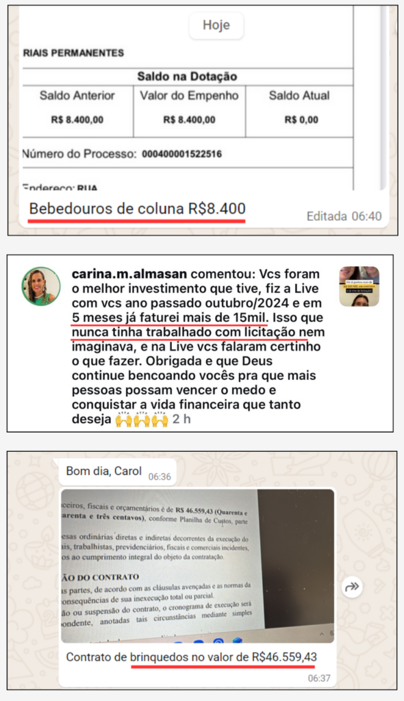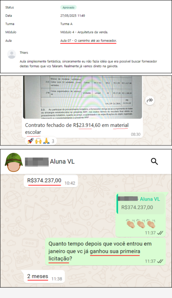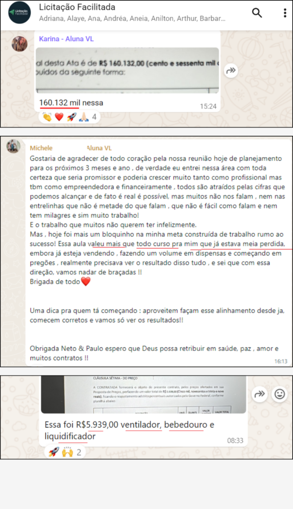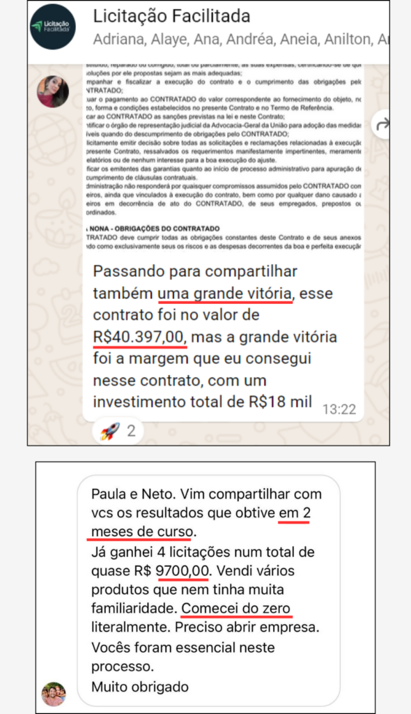 “Em pouco tempo de curso eu venci 4 licitações o que pra mim no início era inimaginável. Eu acredito que isso se deve ao suporte do curso”.