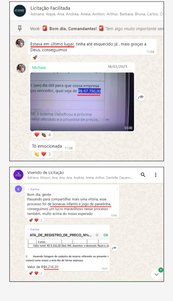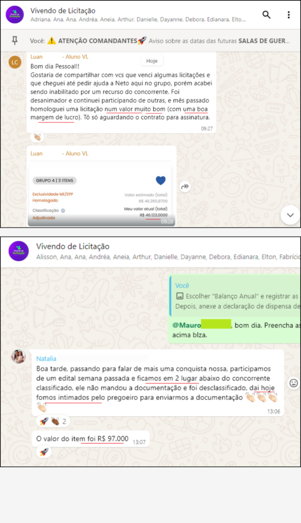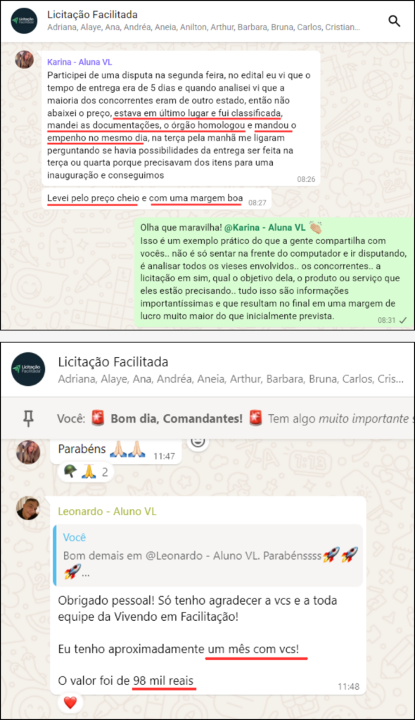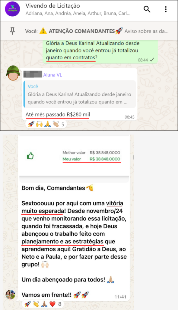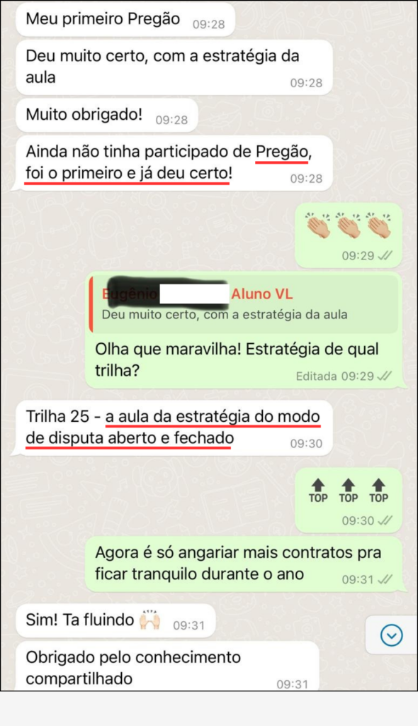 “O que mais valorizo no VL é o contato direto com os mentores Neto e Paula, e a aplicação prática do conhecimento deles, que vai muito além de licitação. E foi isso que me deu confiança para participar dos processos e conseguir vencer em 3 meses as minhas primeiras licitações, conseguindo retornar o investimento feito no curso.”