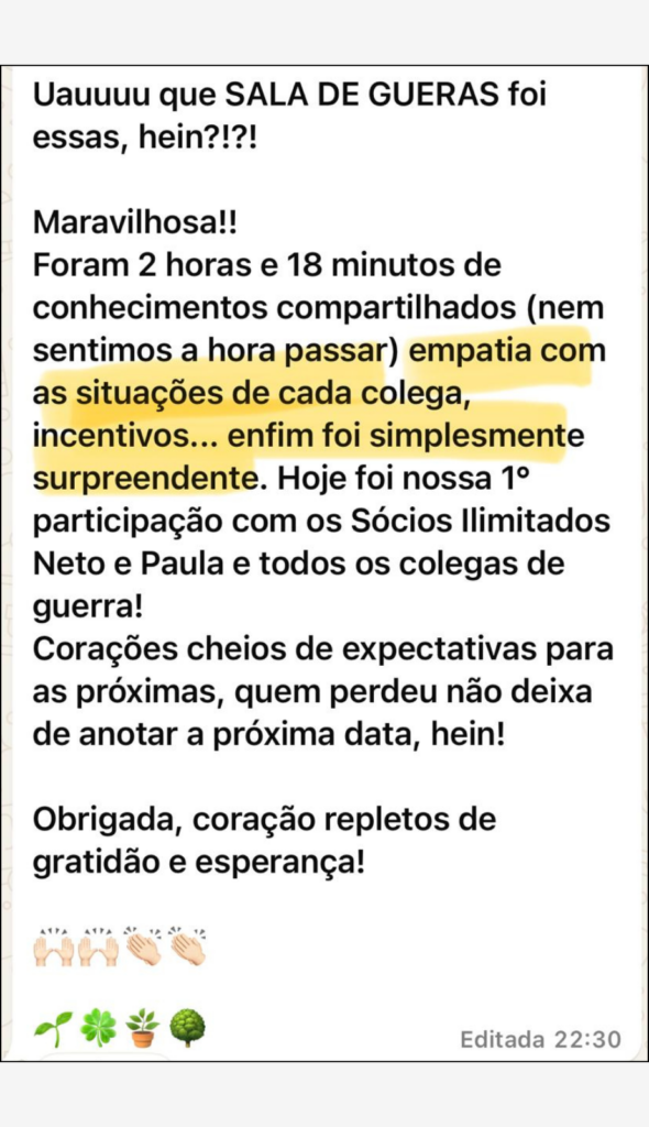 “A gente recebe muitas dicas de ouro que são atalhos para a gente conseguir fazer diferença na hora de atingir os resultados. O conteúdo é completo e aprofundado eles explicam a fundo tudo que a gente precisa para ter sucesso.”